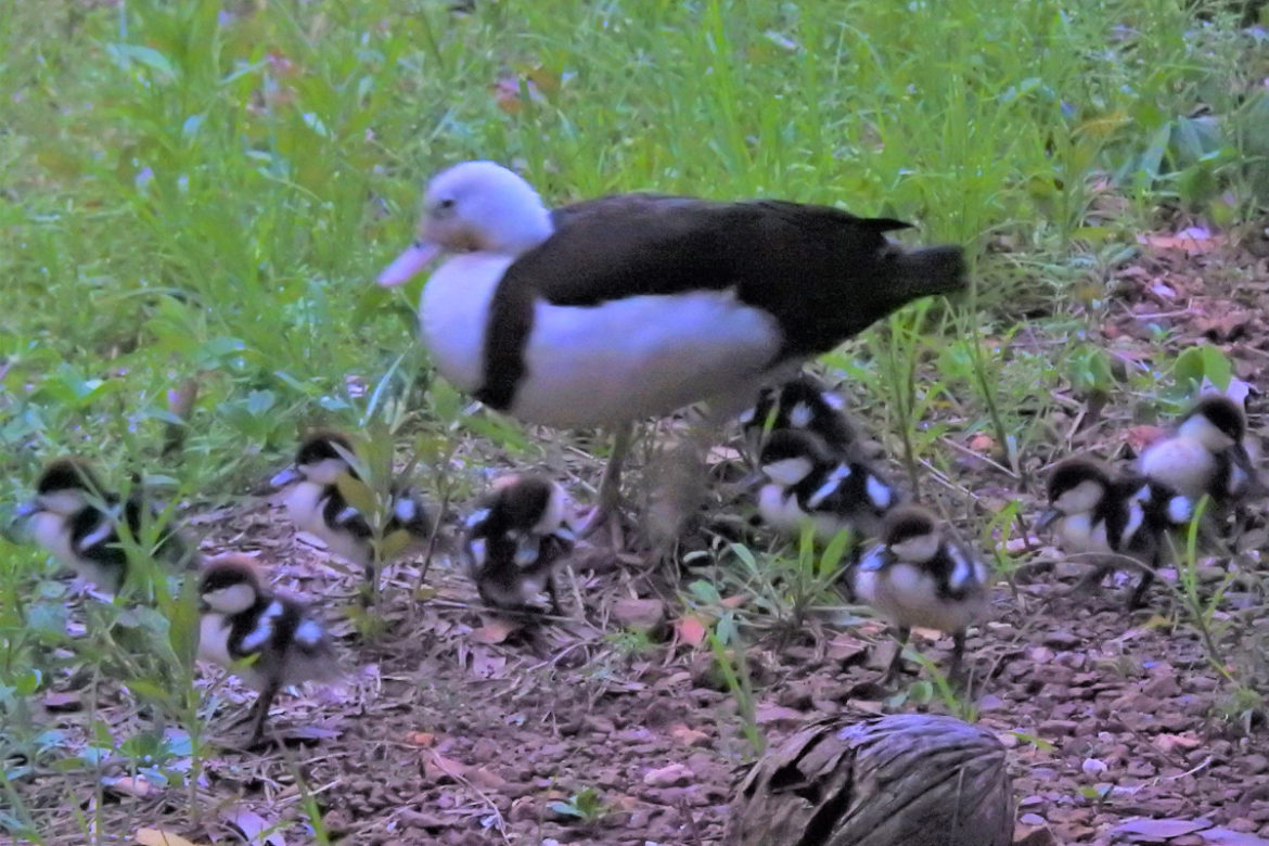And then I noticed, following along behind them was a straggled stream of little fluff-balls; nine tiny ducklings and both the mom and dad looking pretty proud of themselves!